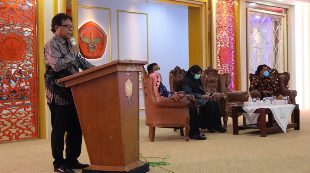 MENDALO,- Dalam rangka pembekalan kuliah kerja nyata reguler, Lembaga Penelitian Pengabdian Kepada Masyarakat (LPPM) Universitas Jambi (UNJA) melakukan Diklat persiapan KKN Tematik yang diadakan di Aula Gedung Rektorat Lantai III UNJA Mendalo, Rabu (23/03/2022). Kegiatan ini dihadiri langsung oleh Wakil Rektor Bidang Perencanaan Kerjasama dan Sistem Informasi Prof. Dr. rer.nat. Rayandra Asyhar, M.Si., Serta Koordinator Pusat Pelaksana Kukerta Ridhwan, S.Ag., M.E. Sy., Ketua LPPM Dr. Ade Octavia, S.E., M.M., dan Dosen pembimbing lapangan UNJA serta mahasiswa yang terlibat dalam kegiatan KKN ini.